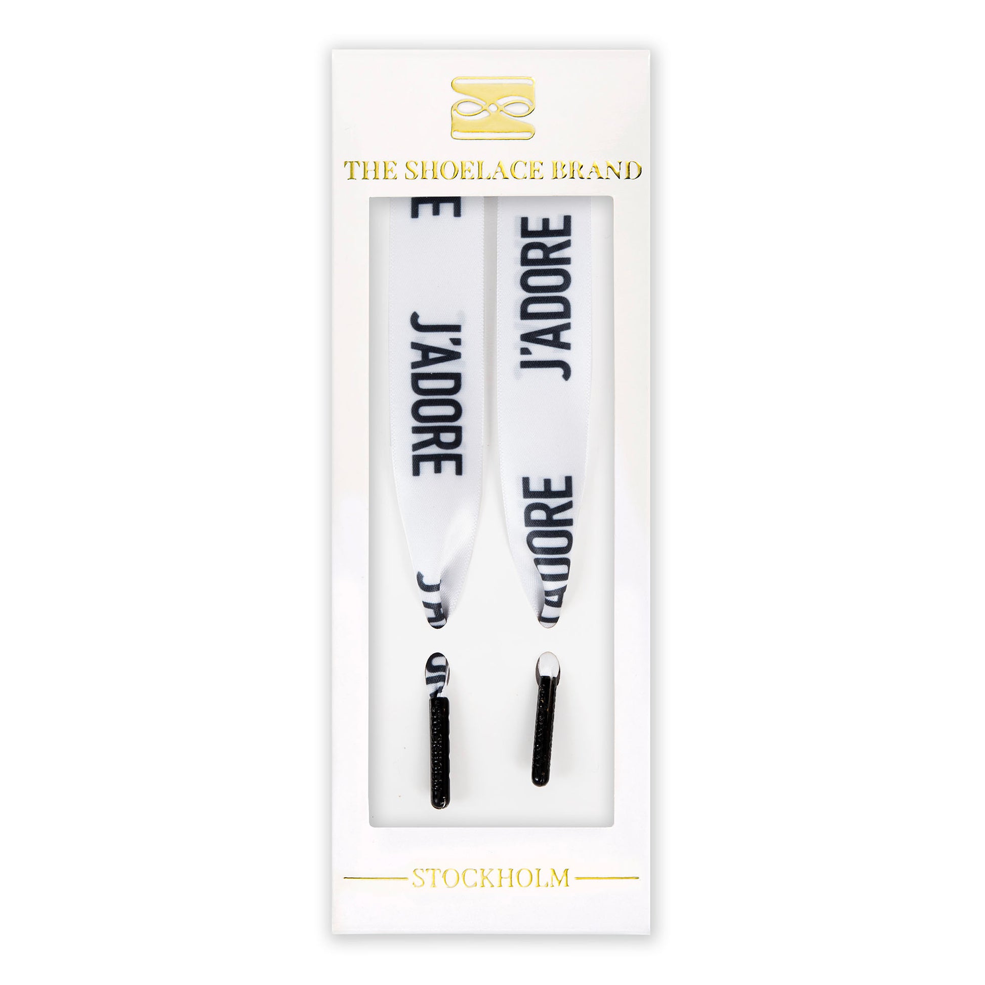 Looking for a clean, elegant upgrade for your shoes? The J’ADORE satin shoelaces offer a timeless white base with bold black text and matching black metal tips. A minimalist design that still catches the eye – perfect for sneakers, boots, or dress shoes.
