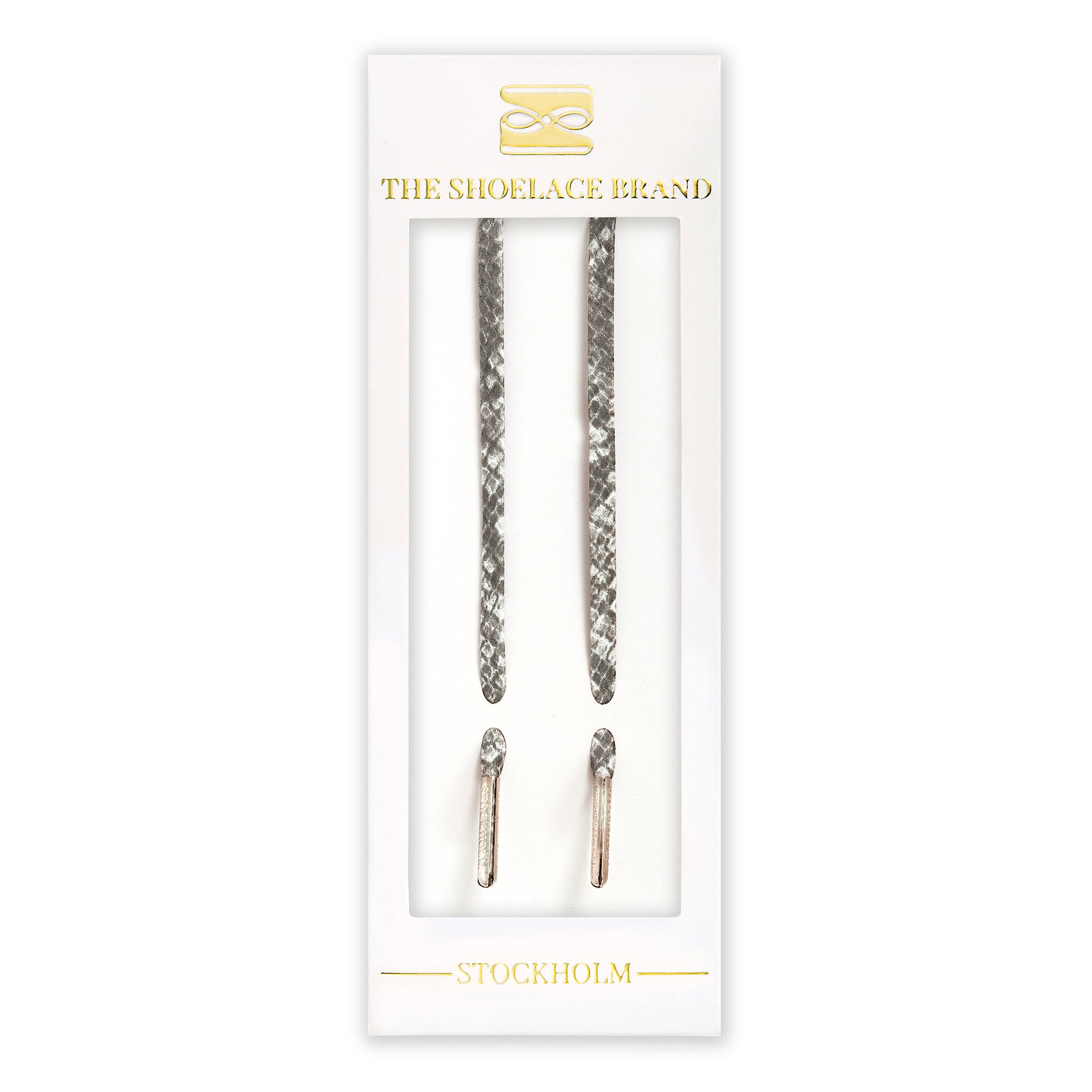 The Shoelace Brand’s grey snake print laces provide a sophisticated and modern touch to your shoes. With their eye-catching snake pattern and neutral grey tone, they are perfect for revamping worn-out sneakers. The silver metal tips add an extra touch of luxury.