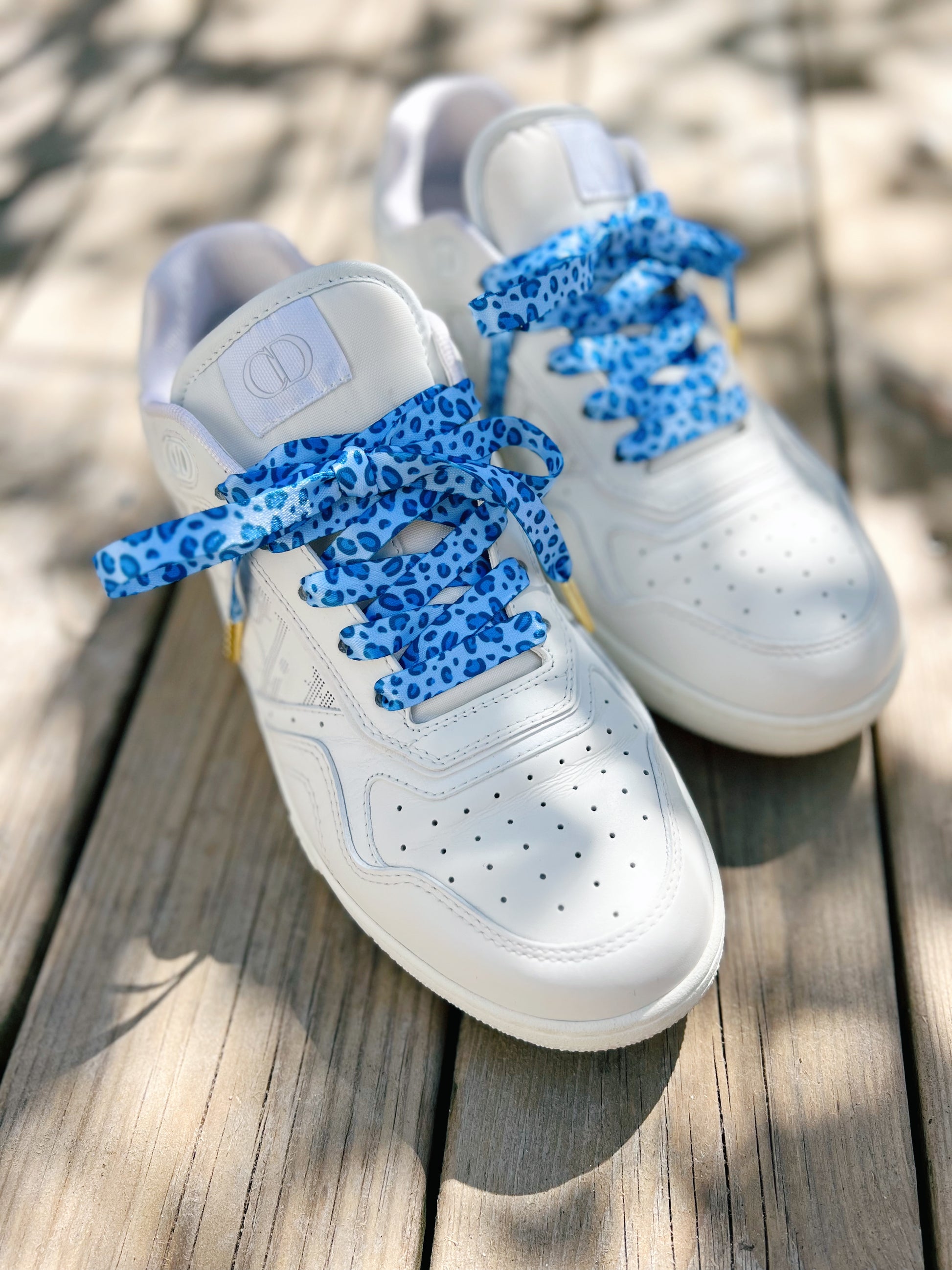 We took our most loved design and gave it a fresh new twist. Blue Classic Leopard features a stylish leopard print in three harmonious shades of blue – a soft light blue base with two deeper blue tones. Finished with golden aglets, these laces add a luxurious vibe to your sneakers or boots.