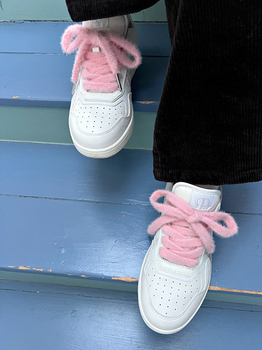 Grey Teddy – Grå Fluffiga Teddy Skosnören med Gulddetaljer (Sample)
